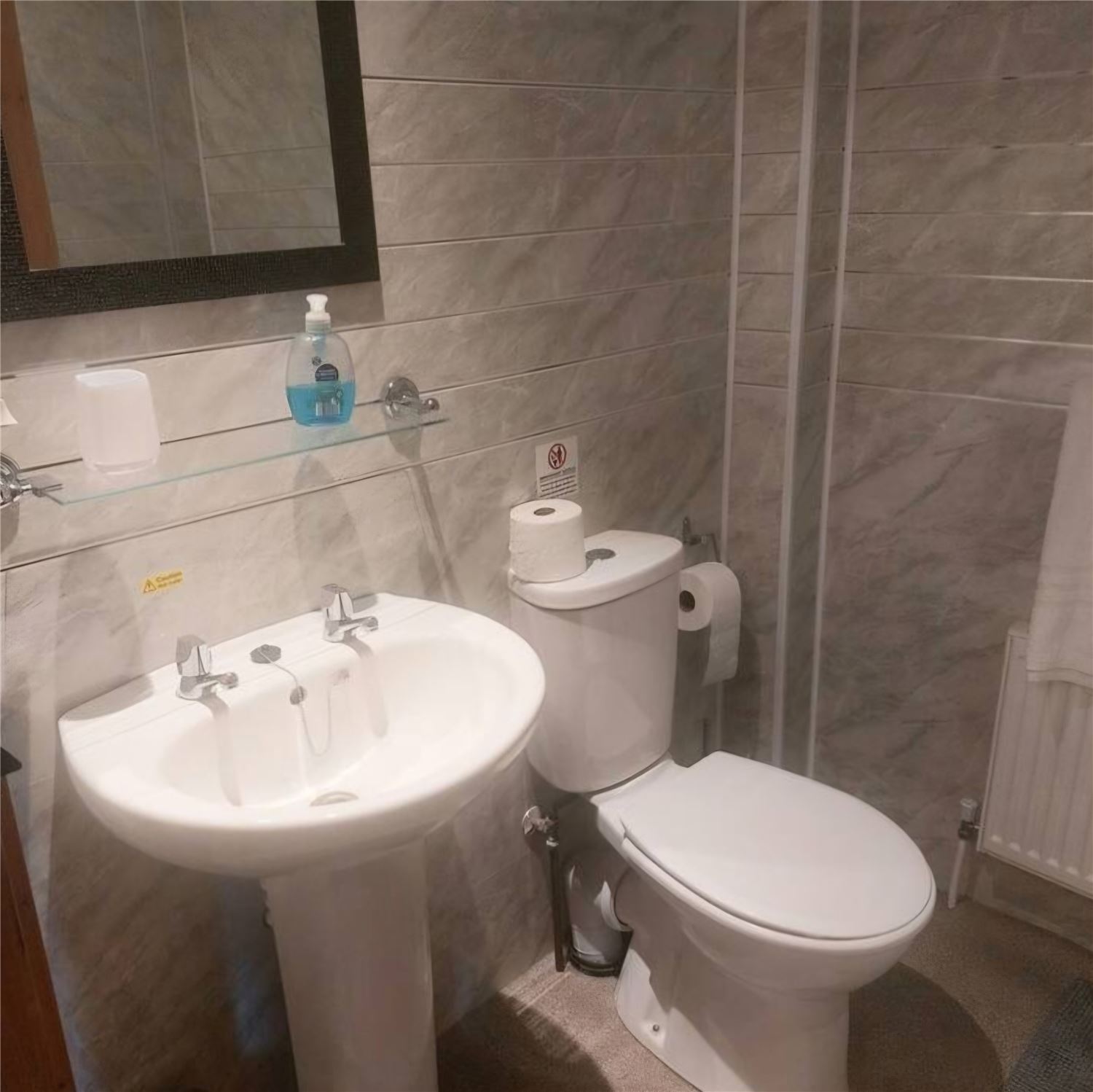 There are three bedrooms: two double rooms with en-suite facilities and walk-in wardrobes, plus a twin bedroom. A large family bathroom offers a bath, walk-in shower, WC, and basin.