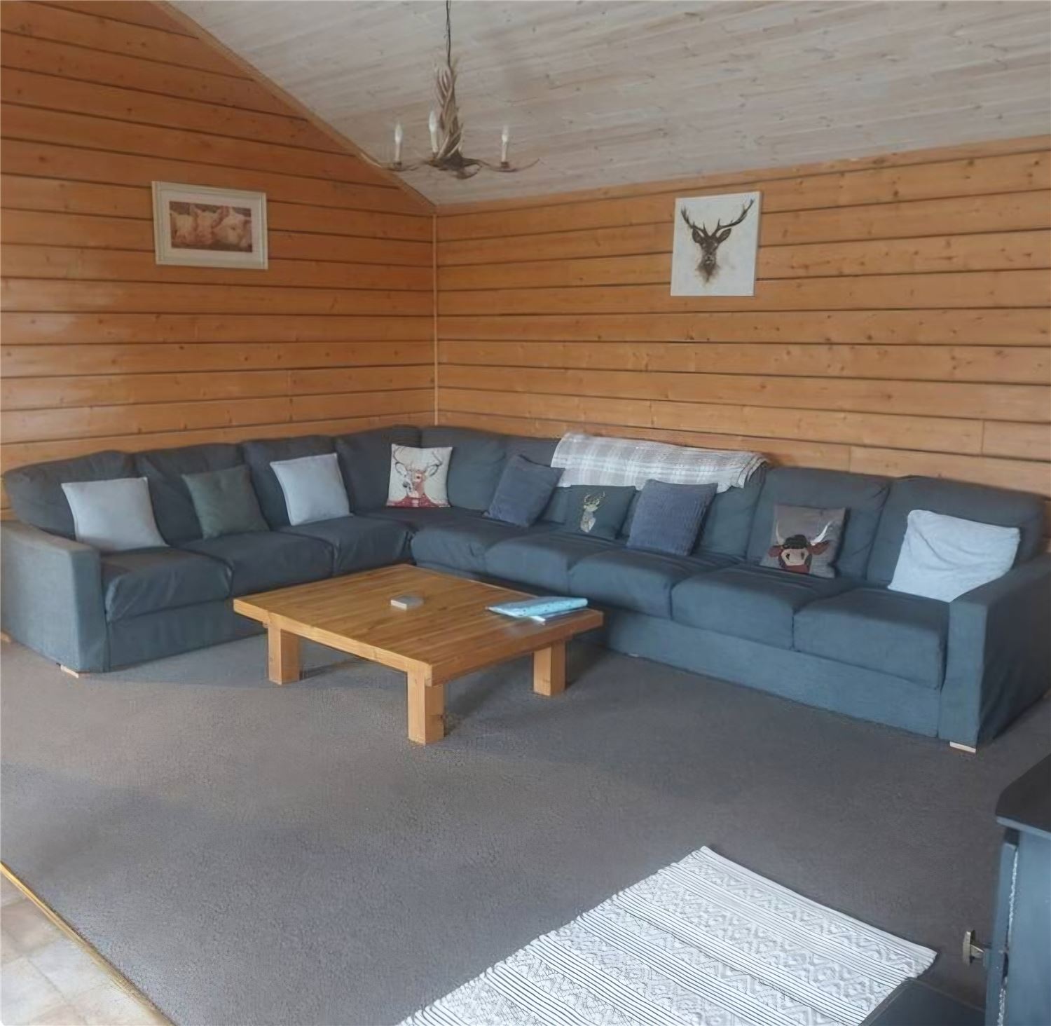 The lounge area features a large corner sofa, a 50-inch TV with Fire Stick, Freesat, and a selection of DVDs – perfect for cosy evenings. A wood burner adds warmth on winter nights, with a complimentary starter basket of logs to get you going.